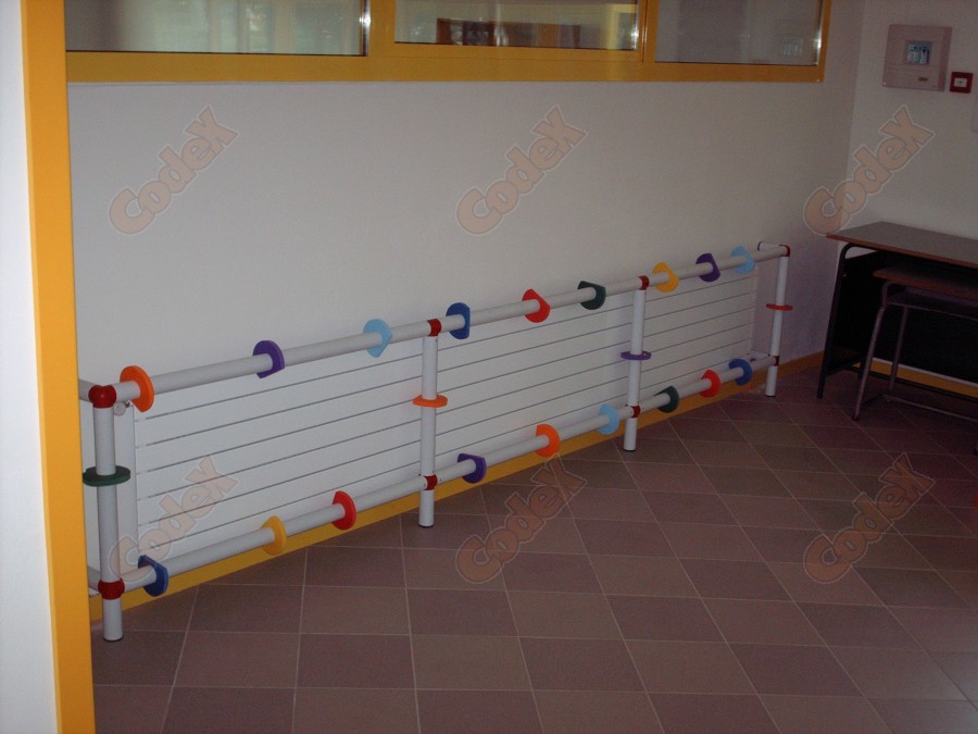 Heat convector covers made of non-toxic, shock-absorbing plastic tubing, 50mm diameter, equipped with shock absorbers for shock absorption. Safety covers for convector heaters and fancoils particularly in demand in kindergartens, preschools, gyms and sports halls.